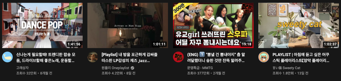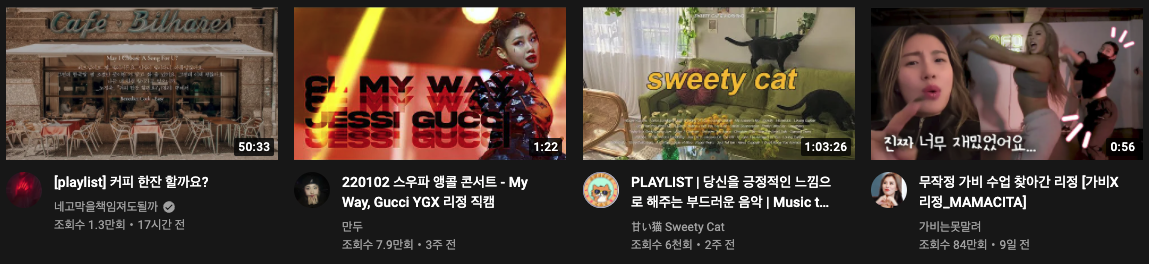 요 몇달간 꾸준히 인기 있는 스우파 영상이 굉장히 많이 자리를 잡고 있는데요. 몇번 클릭해서 봤더니, 이렇게 스우파 영상들로 가득 찬 화면을 확인할 수 있습니다.